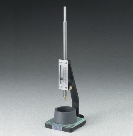 L'appareil se compose d'un cadre portant un piston mobile d'un poids de 300 g. Le piston a un diamètre de 10 mm et est équipé d'une aiguille amovible de 1 mm à l'autre extrémité. Le piston a un diamètre de 10 mm à une extrémité et est équipé d'une aiguille amovible de 1 mm de diamètre à l'autre extrémité. Le piston est réversible et porte un indicateur qui se déplace sur l'échelle graduée en millimètres. L'appareil est fourni complet avec le piston, l'aiguille et le moule en caoutchouc dur.