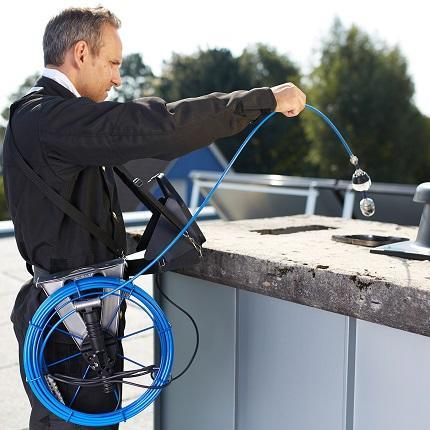 La sangle de transport autour du cou et le moniteur devant la poitrine, une main guide le câble de la caméra, l'autre contrôle avec précision la tête de caméra panoramique et inclinable à l'aide du clavier typique de Wohler : C'est dire la stabilité de la nouvelle caméra d'inspection vidéo Wohler VIS 400 et la facilité avec laquelle vous pouvez travailler sur des toits escarpés pour inspecter des cheminées ou lors d'inspections de canalisations et d'égouts. Pour les ramoneurs comme pour les plombiers, la Wohler VIS 400 est un must en matière d'équipement d'inspection vidéo.