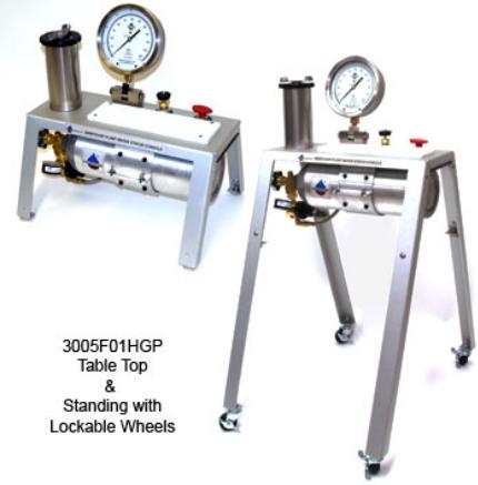 Console d'état de l'eau de l'usine, avec alimentation en air. Doit inclure 1 option A, B, C et D. La configuration la plus courante, 3005-1412, comprend un réservoir sous pression de 7" de haut, un porte-échantillon 3015G4, une plage de 0 à 40 bars et un ensemble de pieds de 8".