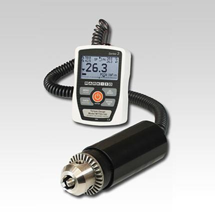 Les couplemètres numériques TT03 sont conçus pour les essais de couple dans le sens des aiguilles d'une montre et dans le sens inverse des aiguilles d'une montre dans pratiquement toutes les industries, avec des capacités allant de 10 ozFin à 100 lbFin (7 à 1 150 Ncm). Un capteur de couple à distance dédié avec mandrin Jacobs peut être utilisé pour saisir un échantillon, un embout ou un dispositif de fixation. Le boîtier robuste en aluminium des dynamomètres permet une utilisation à la main ou un montage sur banc d'essai pour des tests plus sophistiqués.