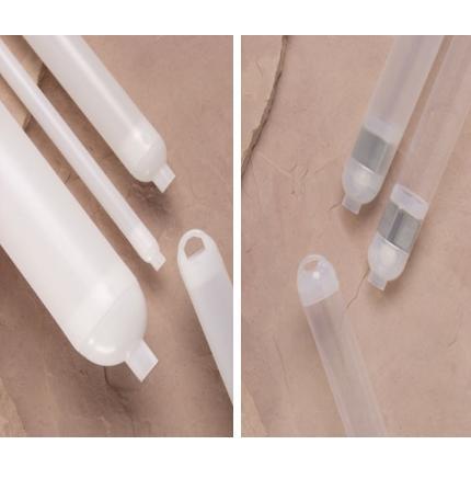 Prêt à l'emploi. Composants non réactifs. Emballage individuel scellé. Capacité d'environ 1 litre (modèle de 1,5"). Disponible en modèles de 75", 1,5" et 3" de diamètre intérieur. Lesté et non-lesté. Clapet anti-retour simple ou double. Polyéthylène et Téflon®.