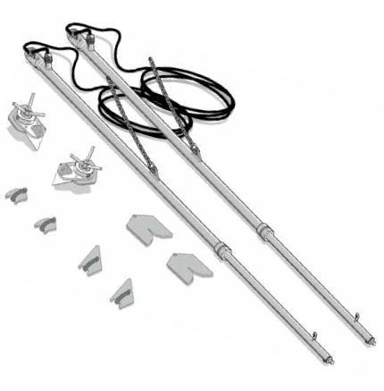 Les kits de bôme sont vendus individuellement et sont fournis avec un connecteur de sortie de l'électro-pêcheur, un ensemble d'embrayage de bôme tribord, un support de bôme supérieur et inférieur, une patte de fixation rapide conçue pour attacher les réseaux d'électrodes, six pieds de chaîne de réglage de la hauteur, une plaque de support de chaîne, 15 pieds de câble entre l'extrémité de la bôme et les connecteurs, deux maillons rapides et des boulons de montage.