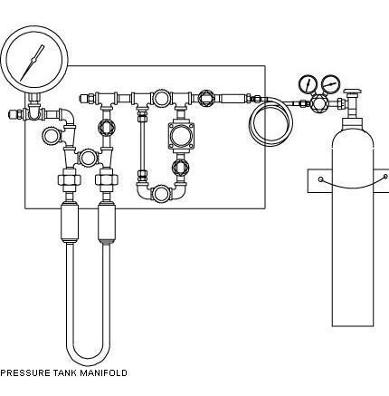 Les collecteurs d'air haute pression pour réservoirs sont conçus pour fonctionner avec des réservoirs d'azote haute pression (jusqu'à environ 3200 psi). Le régulateur d'entrée fourni avec le manifold se couple directement au réservoir d'azote.