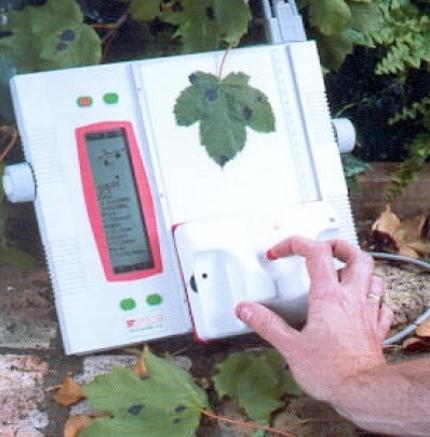 L'AM350 est un appareil de mesure de la surface foliaire compact et portable, adapté à la mesure précise et non destructive de la surface foliaire et des paramètres associés. L'AM350 se compose d'un scanner haute résolution et d'un tableau de balayage avec analyse des données et stockage des images. Une poignée de transport multipositions est fournie pour accroître la portabilité et la facilité d'utilisation. La mesure des feuilles peut être effectuée sur le scanboard ou sur une surface plane indépendante. Le grand écran à cristaux liquides à fort contraste offre une confirmation visuelle de la surface de la feuille scannée ainsi que des paramètres de la feuille mesurés. Les mesures peuvent être affichées en mm, cm ou pouces. Une commande de contraste réglable permet à l'AM350 de s'adapter aux applications concernant les feuilles endommagées, décolorées ou malades. Pour une analyse plus approfondie, l'image stockée peut être téléchargée, aux formats bmp ou tif, dans un logiciel d'analyse d'images disponible dans le commerce.