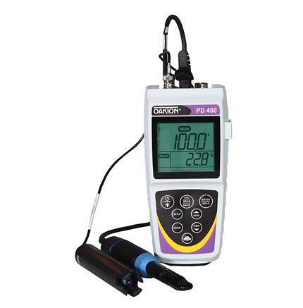Le pH/RDO 450 utilise une technologie de mesure optique offrant des temps de réponse rapides et une stabilité à long terme avec un minimum d'entretien. De plus, la compensation automatique de la température (ATC), la compensation de la pression barométrique et la correction de la salinité garantissent la précision des mesures. Le grand écran LCD rétroéclairé vous permet de visualiser le pH, l'ISE, les mV, le % de saturation ou les mg/L (ppm) en même temps que la température.