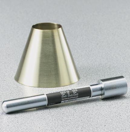 Le cône d'absorption de sable et le dameur sont utilisés pour vérifier les conditions d'humidité de surface du sable par la cohésion des particules.