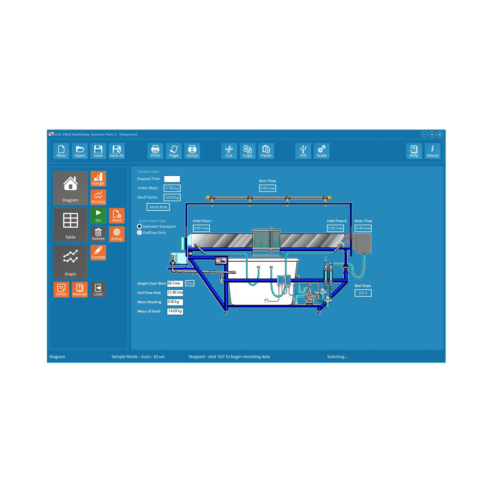 Le système d'hydrologie environnementale avancée S12-MKII-50 est unique dans ses capacités, avec des caractéristiques adaptées à l'étude de la géomorphologie fluviale qui comprennent : les hydrogrammes de pluie et de ruissellement pour des bassins versants de perméabilité variable ; l'extraction des eaux souterraines par des puits, avec et sans recharge de surface par les précipitations ; la formation des caractéristiques des rivières et, ce qui est unique pour cet appareil, la mécanique fluviale.