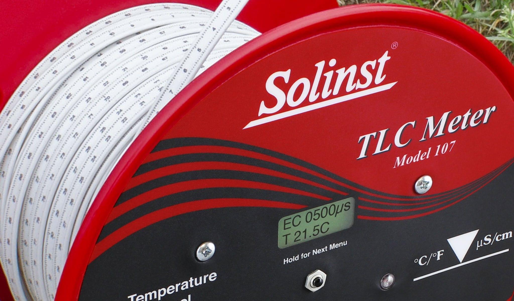 The Model 107 TLC Meter provides accurate, stable temperature and conductivity measurements, displayed on a convenient LCD display for easy reading. Static water level and depth of readings are read off Solinst flat tape, which is precisely laser-marked every mm or 1/100 ft. Tape lengths are available up to 300 m (1000 ft). The TLC Meter is excellent for saltwater intrusion monitoring, road salt studies, and for a general indication of contamination levels.
