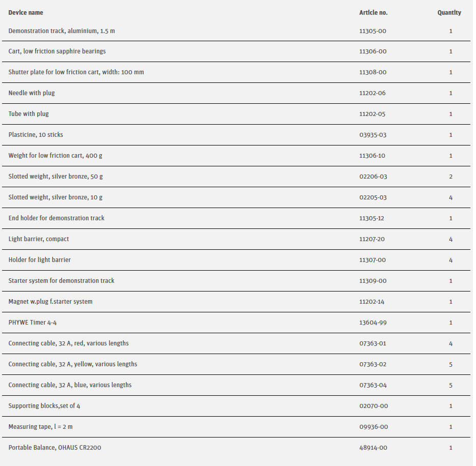 An object on an inclined track is subject to constant acceleration in parallel to the track due to the gravitational forces exerted on the object. The aim of this experiment is to confirm the laws of motion for a uniformly accelerated motion by measuring the time that a cart runs on the inclined demonstration track. In addition, the magnitude of the acceleration due to gravity can be verified based on Newton’s second law.
