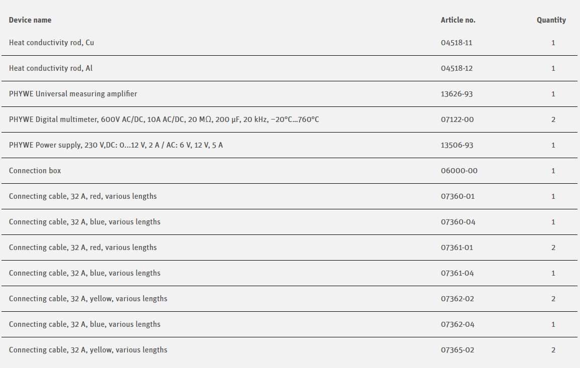 The resistances of various DC conductors are determined by recording the current / voltage characteristic. The resistivity of metal rods and the contact resistance of connecting cords are calculated.