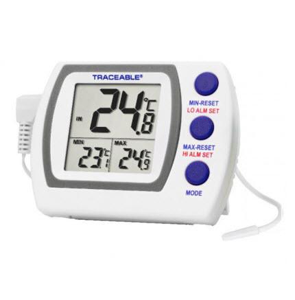 Triple display simultaneously shows MIN/MAX and current temperatures, °F/°C switchable Monitors high and low readings overnight, on weekends, or for any time period – a significant advantage over current read-only temperatures Alarm is programmable in 1° increments and alerts user when temperature rises above or falls below a set point