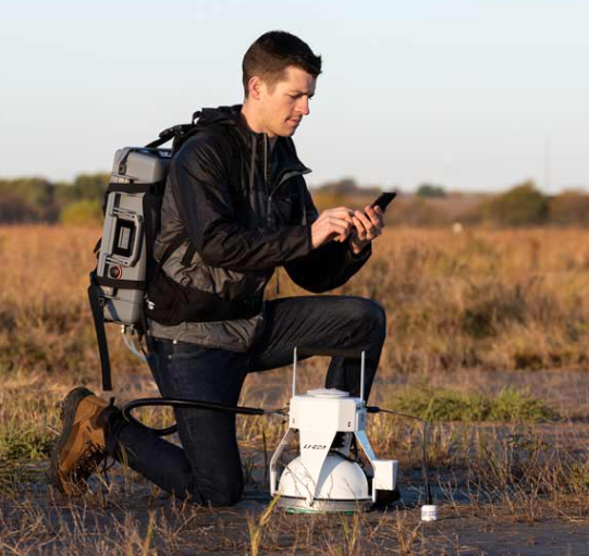 Built with field researchers in mind, the Smart Chamber is easily portable and self-powered with batteries that last up to 34 hours (2 batteries, 17 hours per battery and 2 minutes per collar active time, 20 collars total per hour). Monitor flux measurements from your mobile device and track measurement locations with GPS data. Later, visualize a map of your fluxes using Google Earth™ and a .kml file created in SoilFluxPro.