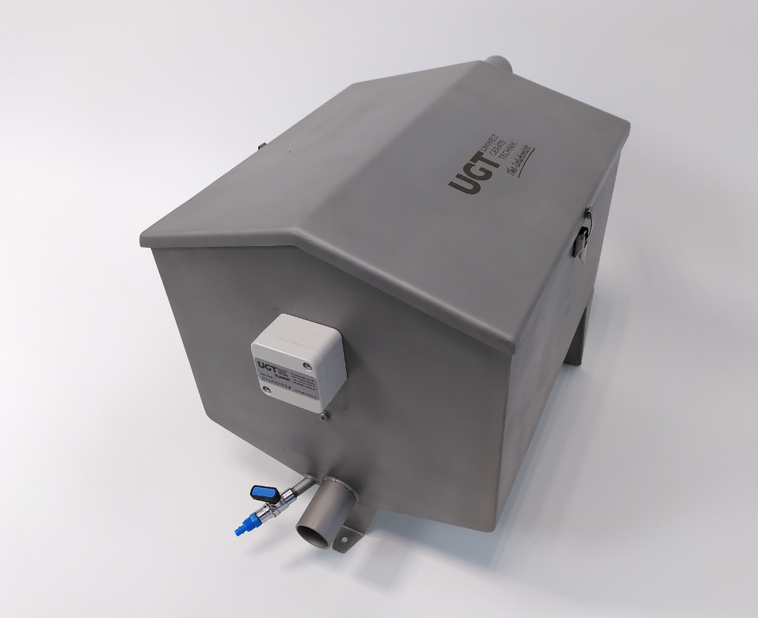 Up to a tipping pan volume of three liters, the tipping counters can be equipped with a connection for aliquot sampling (can be ordered from us). For each tipping, 0.1…3 % volume aliquote is then filled into a PE collection bottle for further analysis in the laboratory via an outlet connection with hose connection and shut-off valve.