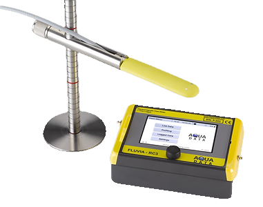 The FLUVIA RC3 flow meter is a portable electromagnetic device that measures the velocity of water to determine its flow.