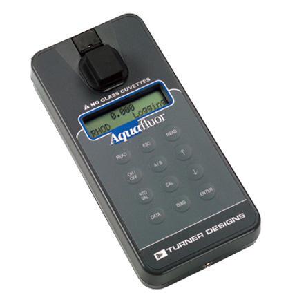 The AquaFluorTM is a lightweight, inexpensive, handheld fluorometer/turbidimeter ideal for field use. Its small size and durability make the AquaFluorTM perfect for the user who needs quick measurements away from the laboratory. Dual-channel capability allows users to measure fluorescence and turbidity in one sample.