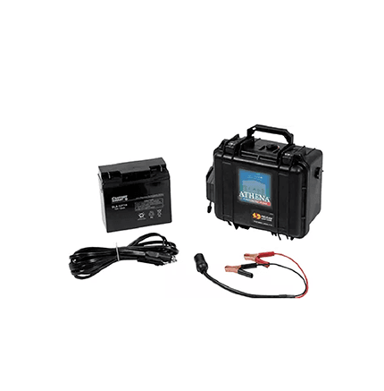 The Athena® has a low voltage disconnect at 11 volts. In short, the Athena® will shut off automatically if the battery output voltage drops to 10.75 volts or lower. In short, the battery is reaching a “critical low level” so stop using the unit immediately and please recharge your battery within 24 hours.