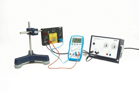 The conductivity of a germanium test sample is measured as a function of temperature. The energy gap is determined from the measured values.