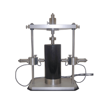 The GDS Bender Element Core Holder is designed to facilitate an aligned measurement of S-waves and P-waves through a cylindrical soil sample.