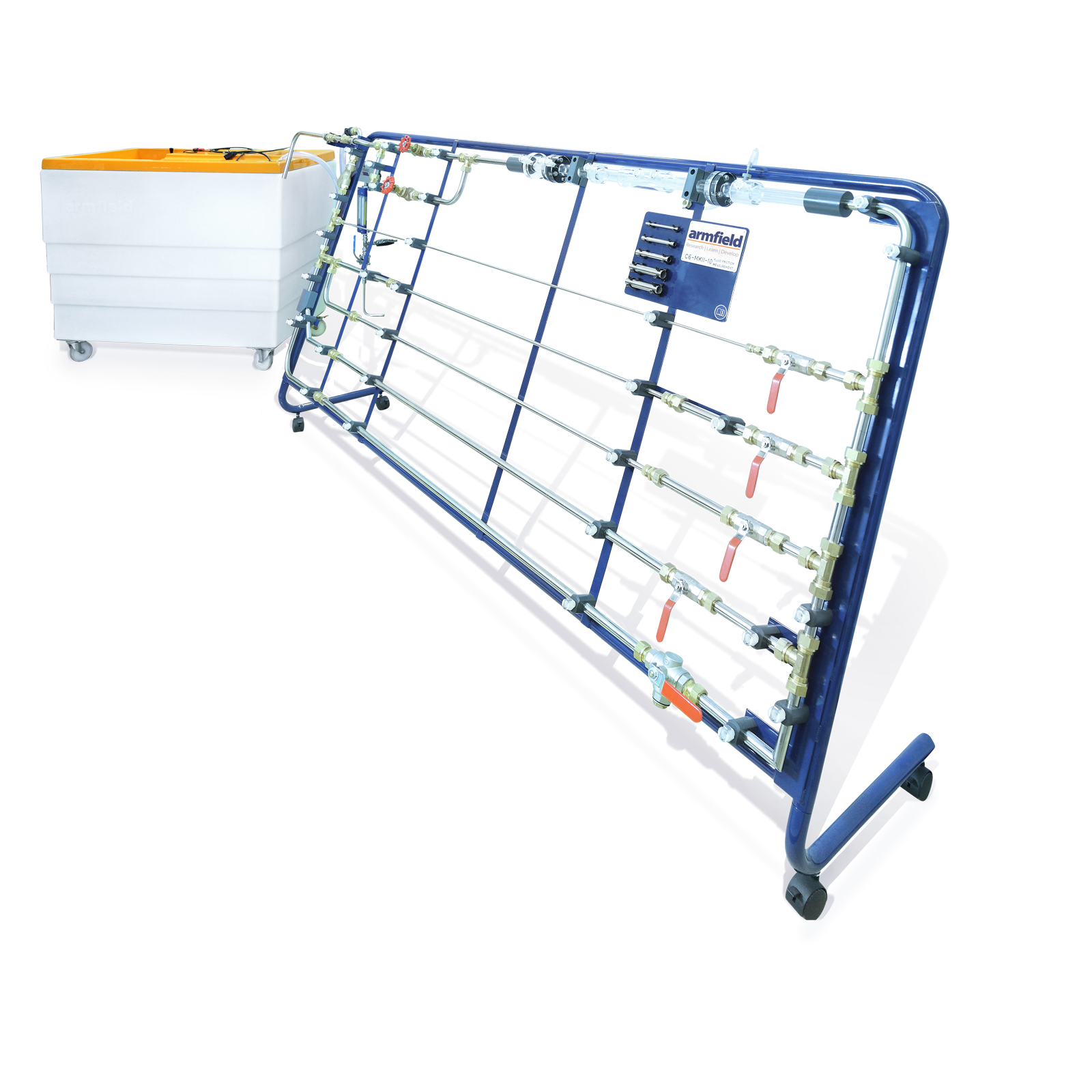The Armfield C6-MKII-10 Fluid Friction Measurements unit provides facilities for the detailed study of fluid friction head losses, which occur when an incompressible fluid flows through pipes, fittings and flow metering devices.
