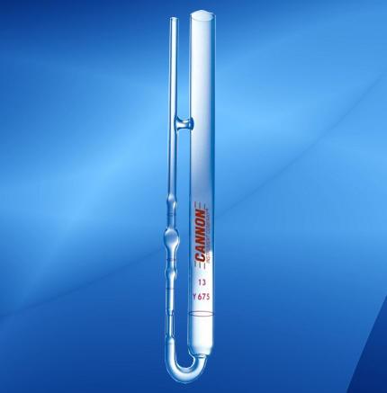 For measurement of viscosity of highly viscous materials such as asphalt cement at 60°C (140°F) according to ASTM D 2171. Applicable to materials with viscosity range of 0.036 to 80 000 poise. Vacuum of 300 mm Hg is applied to small arm with timing bulbs; two bulbs are incorporated to extend viscosity range of viscometer. Provided with certificate of calibration and instruction sheet.