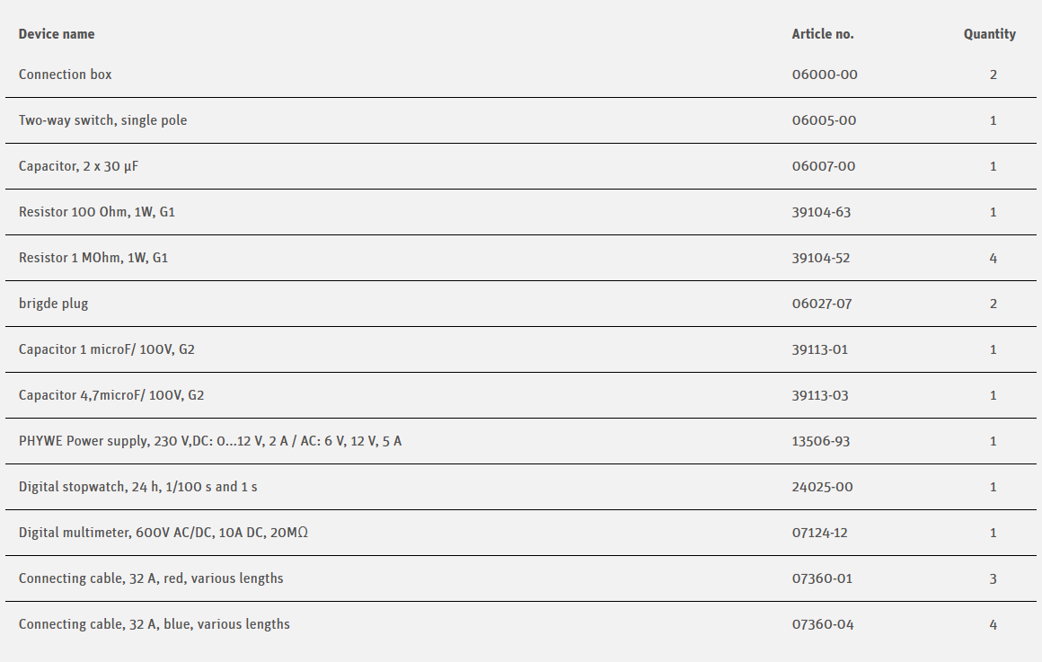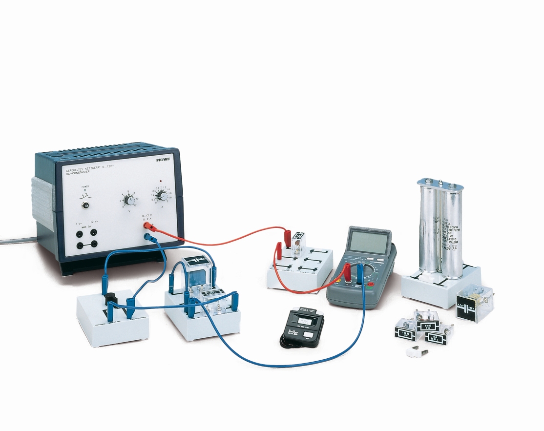 A capacitor is charged by way of a resistor. The current is measured as a function of time and the effects of capacitance, resistance and the voltage applied are determined.