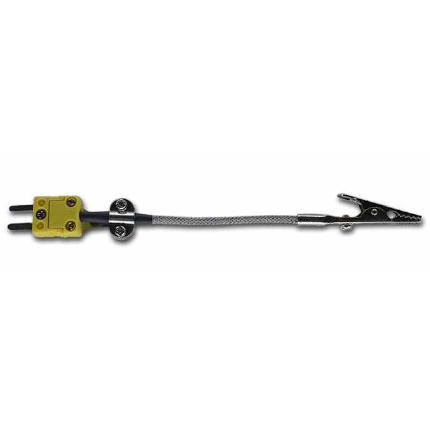 Designed for measurement of air temperature inside ovens. Available in thermocouple types K and J. fibre glass insulated thermocouple cable with SS overbraid and metal clip max. temperature: 482oC (900oF)