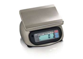 SK-WP Series compact washdown scales are ideal for food preparation and food service applications. With an IP65 rating, all stainless steel construction, a large removable stainless steel pan, these scales are washable and easy to clean. SK-WP scales are NTEP Certifi ed, Measurement Canada approved, NSF listed and meet HACCP requirements. A long 1200 hour battery life (6 D-cell batteries) eliminates the need for optional AC power in many applications. Units for NTEP models: g, oz, lb. Non-NTEP models add lb-oz.