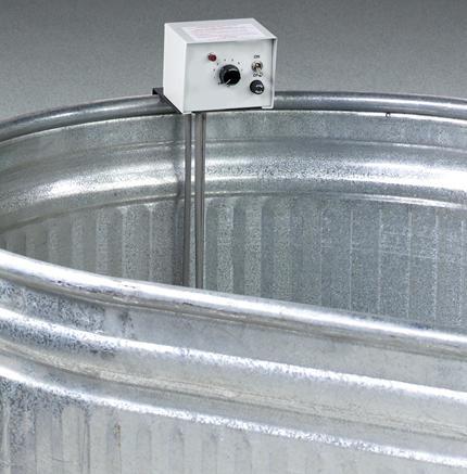 Thermostatically controlled with solid state circuitry or warming up to 160°F (71°C); mounted on aluminum base; 22 1/2" (572 mm) overall length. For use on tanks where the temperature does not fall below 55°F (13°C).