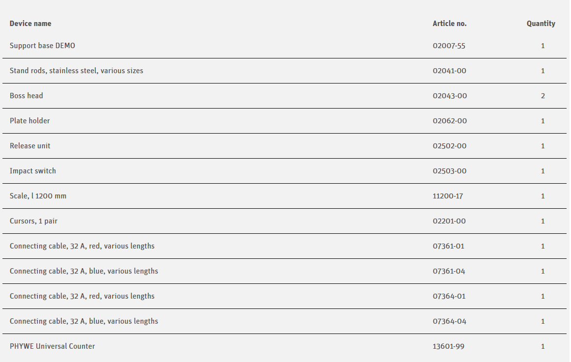 The time it takes for an object to fall a certain distance is measured. Assuming uniform accelerated motion the gravitational acceleration g is determined using the known distance-time ratio. g is a constant for the heights measured.