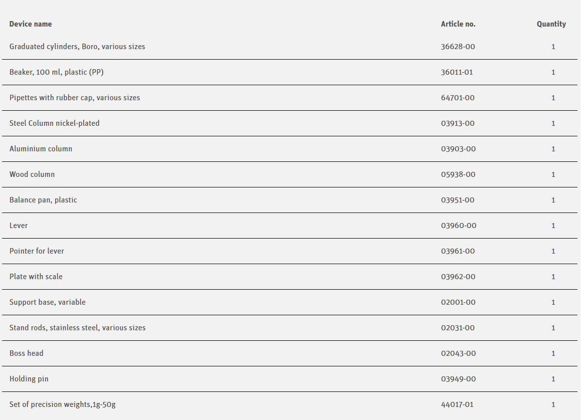 2. The measurement of the mass of liquids can only be performed using a container. The students should determine the mass from the difference of two measurements.