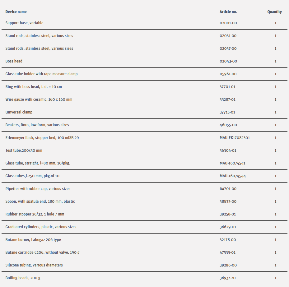 Coloured water is brought to a boil and the water vapour is conducted into a cooled test tube. The colour and quantity of water before and after distillation are observed.
