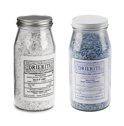 Indicating DRIERITE is impregnated with cobalt chloride. Indicating DRIERITE is blue when dry and changes to pink upon absorption of moisture. The colour change is pronounced and clearly visible. This makes Indicating DRIERITE valuable when it is necessary to know with certainty that dryness is being maintained and to signal when the drying agent should be replaced. It has the same efficiency as Regular DRIERITE, and somewhat greater capacity due to the desiccating effect of the cobalt chloride.* It can be regenerated repeatedly for reuse.