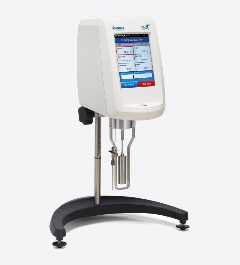 The DV2T Viscometer features a 5-inch color display to guide users through test creation and data gathering for fast and easy viscosity measurements. The DV2T also offers powerful programming capabilities and results analysis including data averaging and QC limits with alarms.