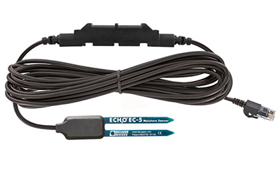 An affordable soil moisture smart sensor with a two-tine design for easy installation. This sensor integrates the field-proven ECH2O™ EC-5 Sensor and a 12-bit A/D, and provides ±3% accuracy in typical soil conditions, and ±2% accuracy with soil-specific calibration. Readings are provided directly in volumetric water content. This sensor is designed to maintain low sensitivity to salinity and textural effects.