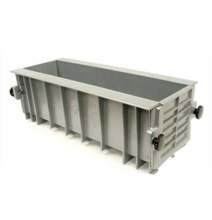 This new, durable, lightweight 6" x 6" x 21" plastic beam mold utilizes simple thumb screws for ease of stripping, cleaning and assembly. The lightweight design requires no tools and weighs less than one quarter of the weight of a conventional mold.
