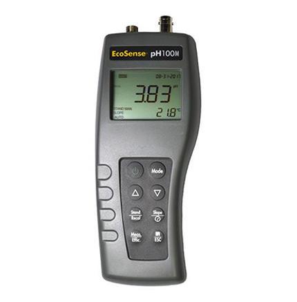 The EcoSense® pH100M handheld instrument provides accurate and repeatable pH, mV, and temperature measurements in an affordable format. Compared to the EcoSense® pH100A, the pH100M features extended memory and simple data transfer with a micro-USB port.