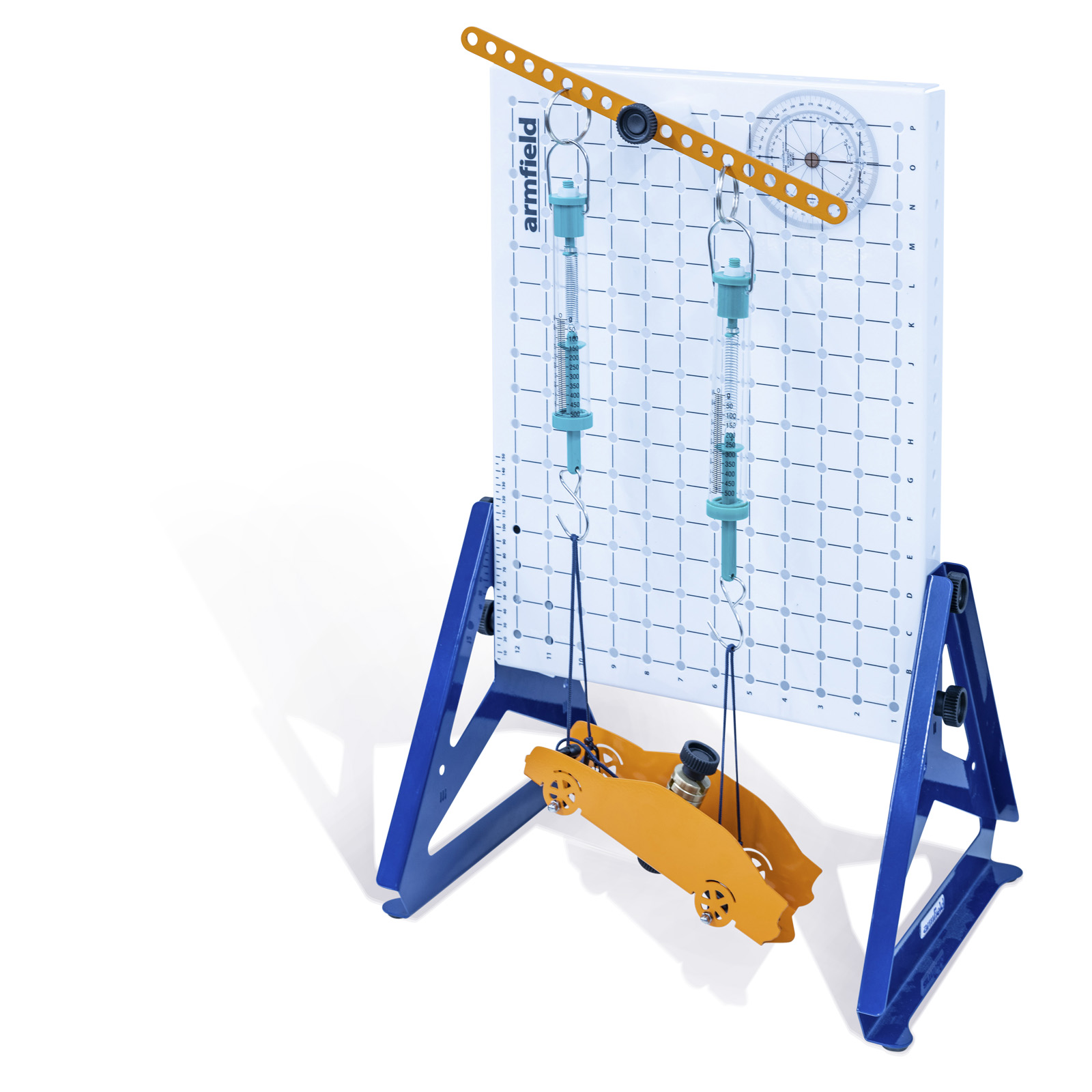 Different configurations are possible to enhance understanding of the principles of moments, levers, beams and the relationship of distance and forces applied on a beam.