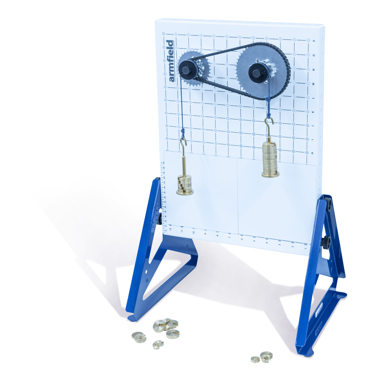 Belt and chain drive experiments are included to demonstrate the characteristics of different belt and chain systems with multiple velocity ratios. The efficiency can be calculated for varying loads for both the different velocity ratios and the different belt and chain systems allowing comparisons between the different systems to be observed. Experiments are also included to demonstrate the effect of belt tension and the effect of pulley lap.