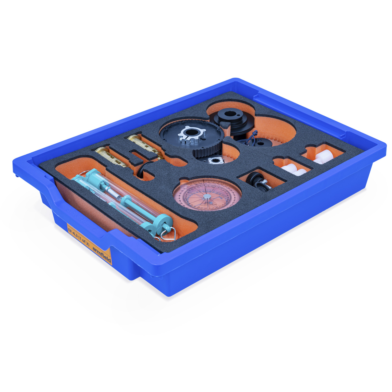 The EF-4.3 Drive Systems experiments kit introduces students to various types of belt, chain, and shaft drive systems.