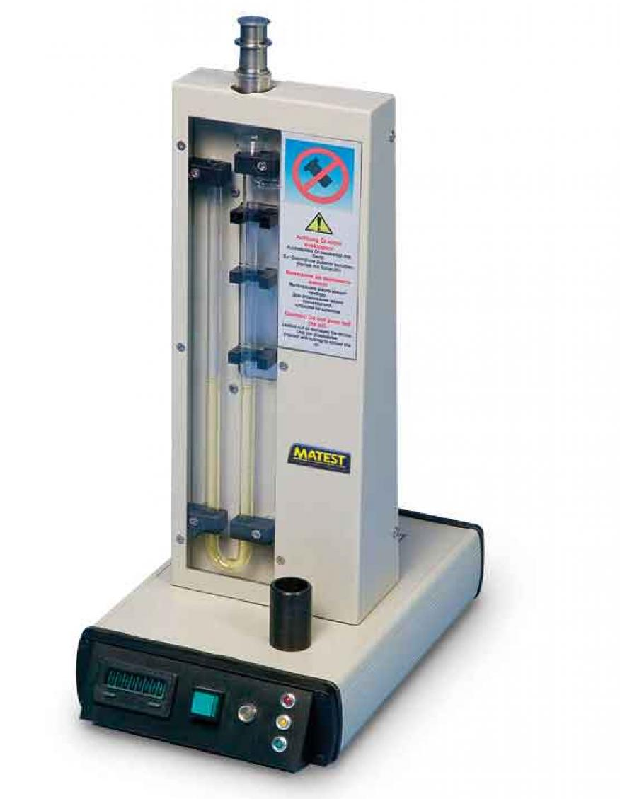 Electronic Blaine air permeability apparatus with semi-automatic test cycle, electric suction pump, time registration and measuring section with photoelectric barrier.