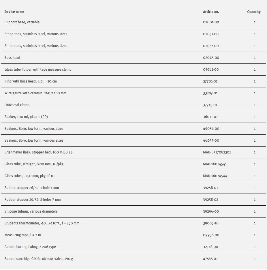 In this experiment the students should qualitatively observe the expansion of water and air during heating.