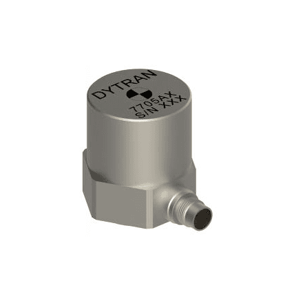 The Dytran series 7705 Extended Low Frequency (ELF™) accelerometer combines both a piezoelectric and a variable capacitance MEMS element, combined as a single output, to create the widest frequency response bandwidth in the industry, from DC (0 Hz) to 10 kHz. Unique ELF™ technology combines the most desirable features of piezoelectric sensors (excellent high frequency response) with those of variable capacitance accelerometers (true DC response), eliminating the need for using two different technologies to cover the bandwidth of interest in an application. Slow rotation speeds in the sub–1Hz range and gear mesh frequencies up to 10 kHz can now be made using the same sensor. The Dytran series 7705 ELF™ accelerometer is ideal for flight testing, ride quality, Health & Usage Monitoring Systems (HUMS), wind turbine measurements, machinery monitoring, and the widest range of structural response applications.