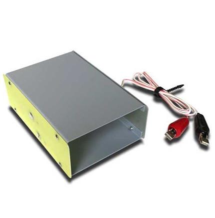 This adapter’s three foot cord with battery clips allows a battery of much larger capacity to power the SR-1101 for extended periods of time. External gell cell batteries and weather proof cases are available up to 225 Amp-hour rating (8-D).
