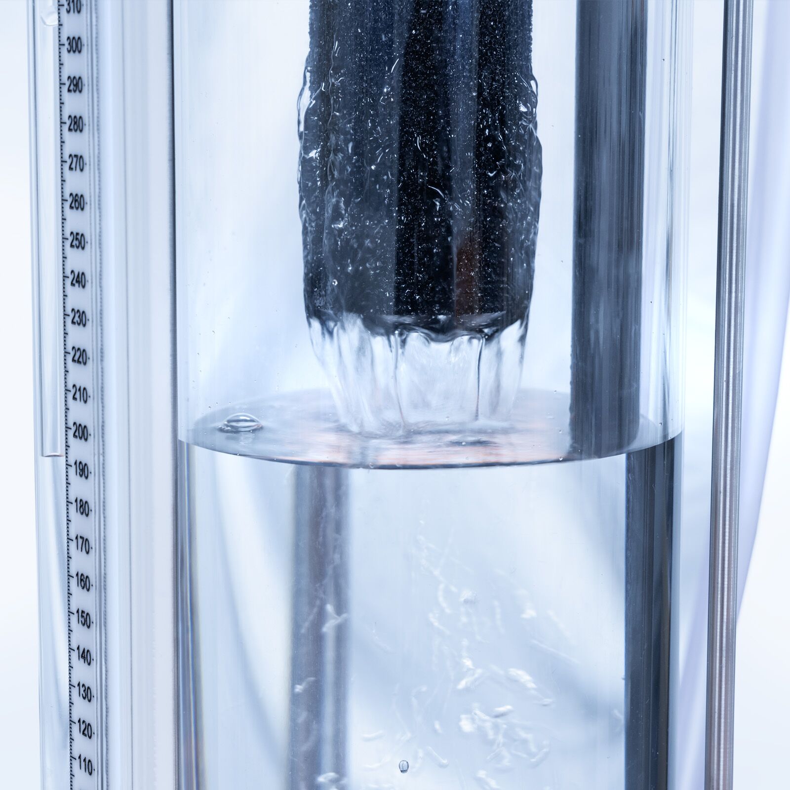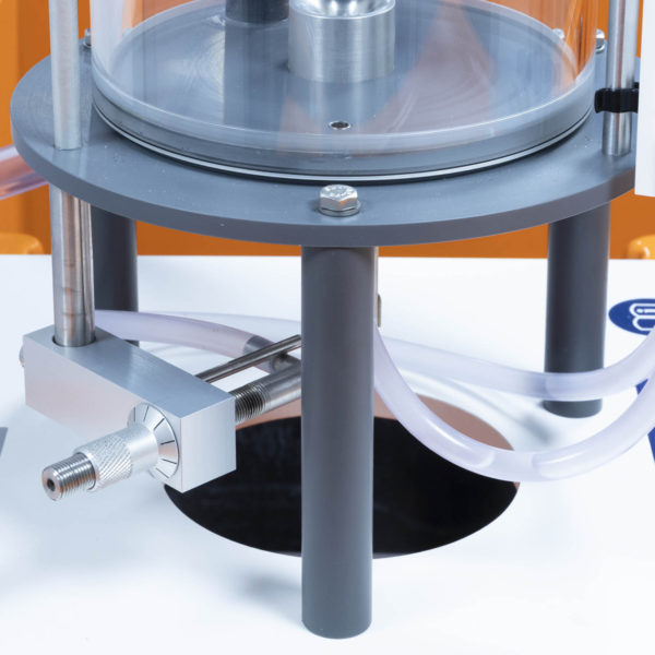 The Orifice Discharge accessory consists of a cylindrical clear acrylic tank, which has an orifice fitted in the base.