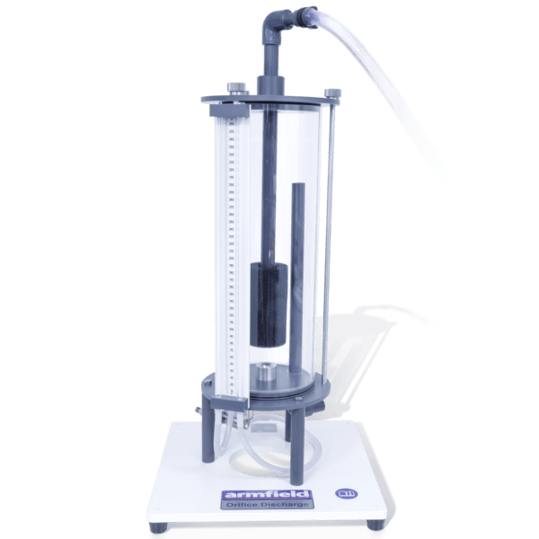 The Orifice Discharge accessory enables full analysis of the flow through seven different orifices over a range of flow rates.