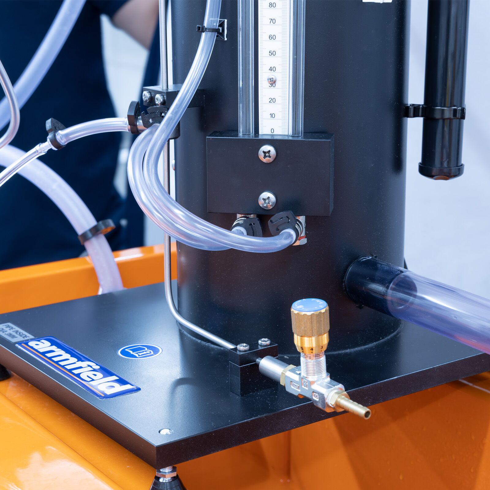 The Energy Losses in Pipes accessory consists of a test pipe, orientated vertically on the side of the equipment, which may be fed directly from the hydraulics bench supply or, alternatively, from the integral constant head tank.