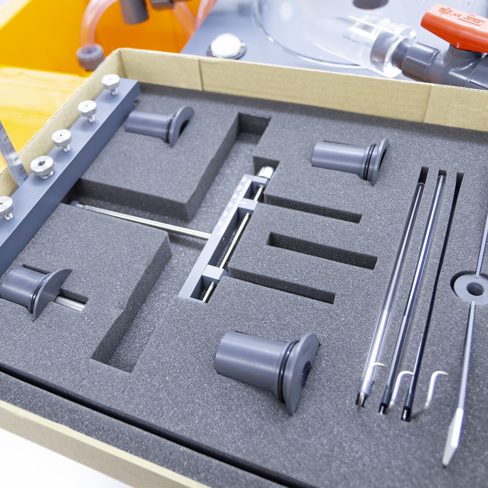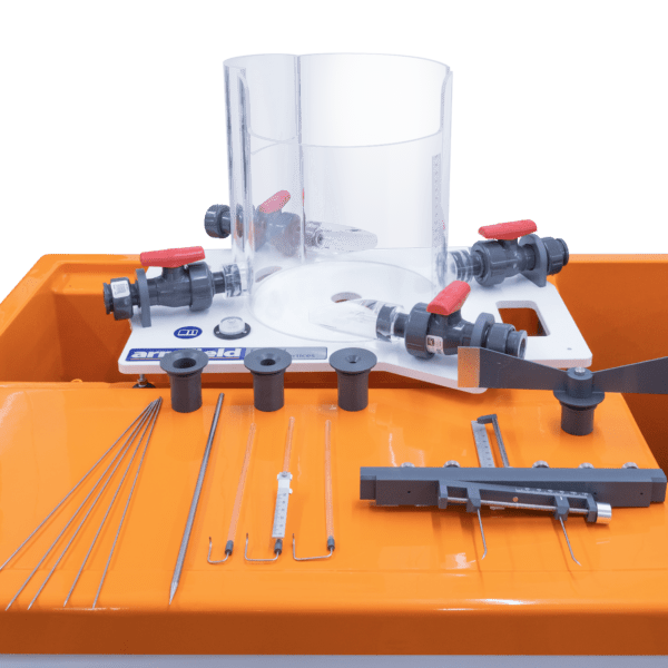 This equipment is designed to produce and measure the characteristics of free and forced vortices using a hydraulics bench.