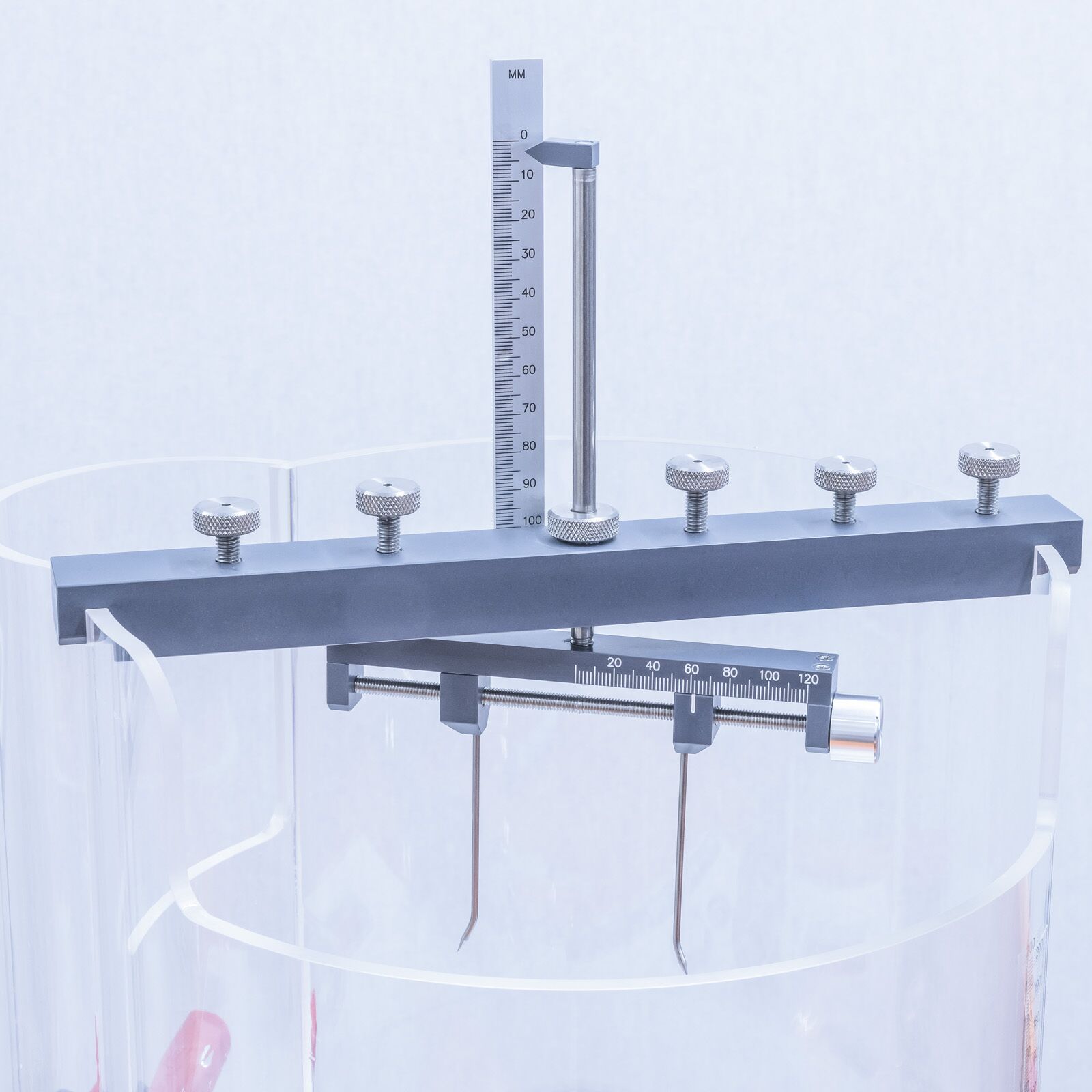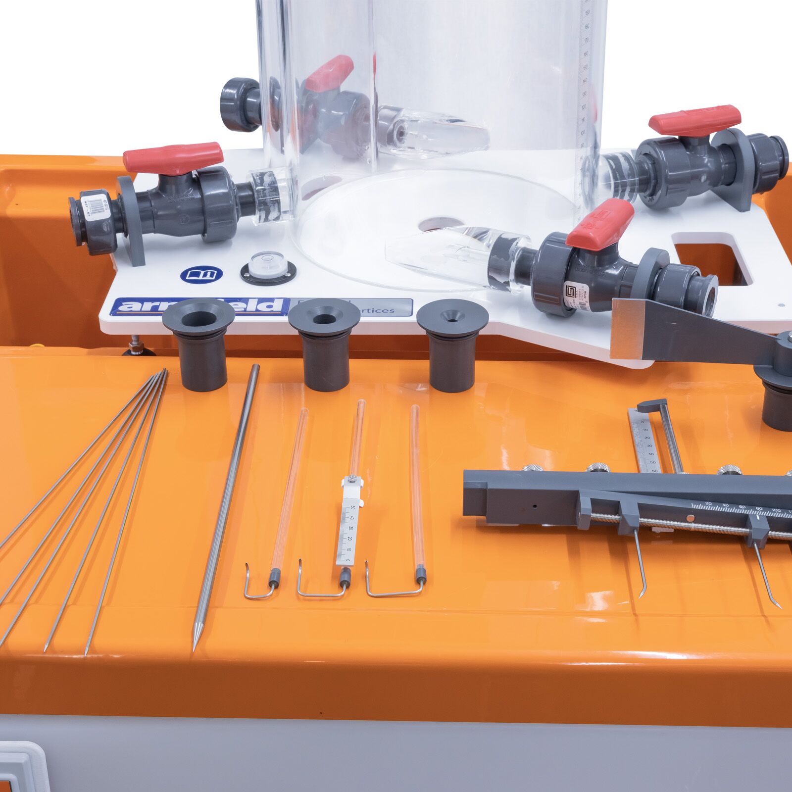 Velocity at any point in the free or forced vortices may be measured using the appropriate pitot tube supplied.