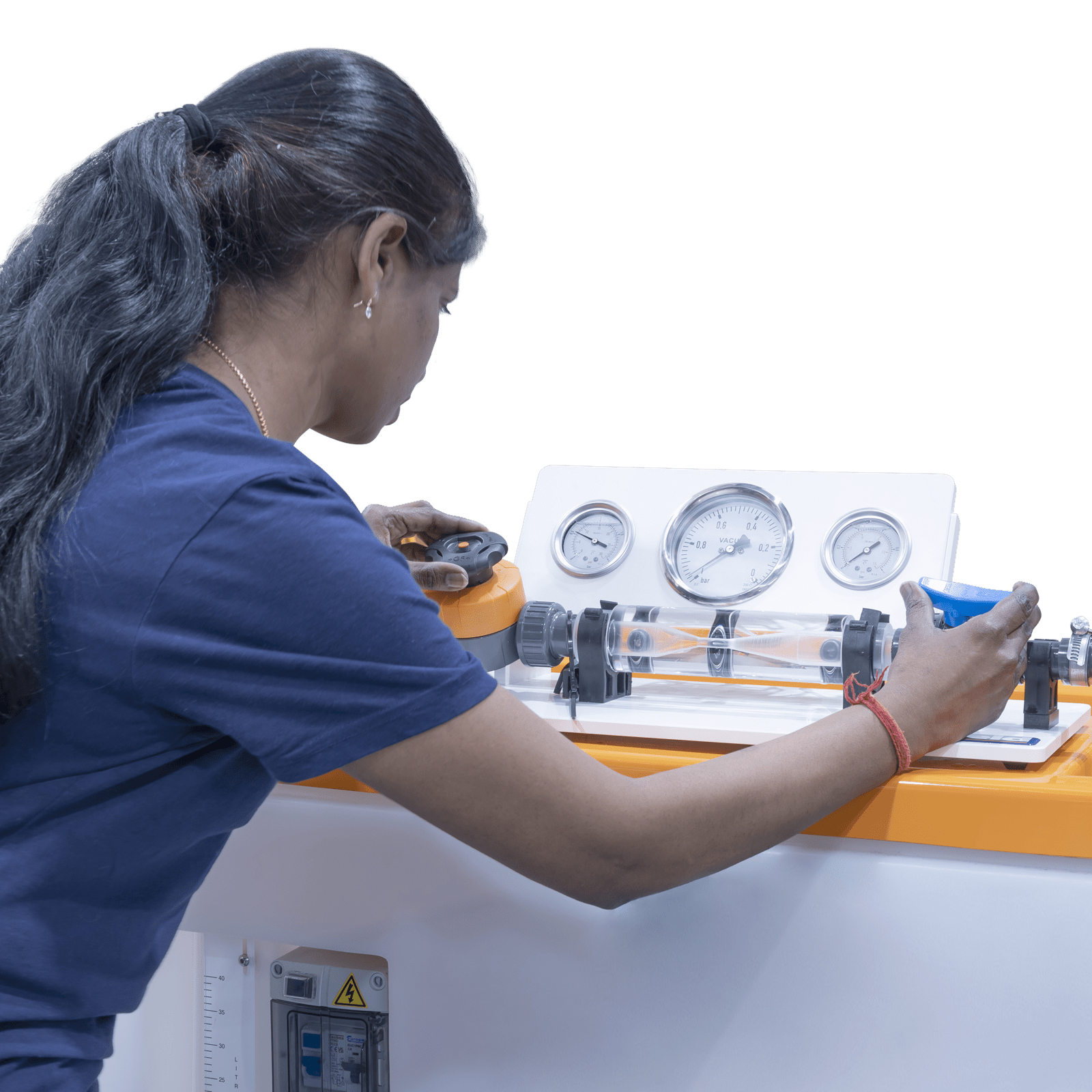 This equipment demonstrates to students visually, audibly and numerically the phenomenon of cavitation and its association with the vapour pressure of a liquid.