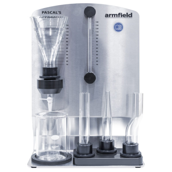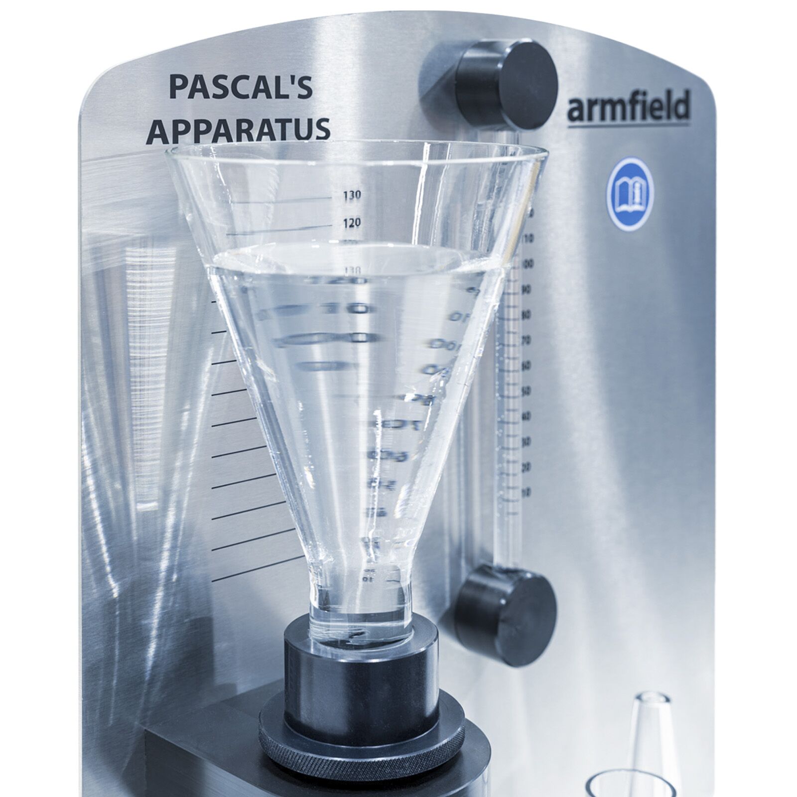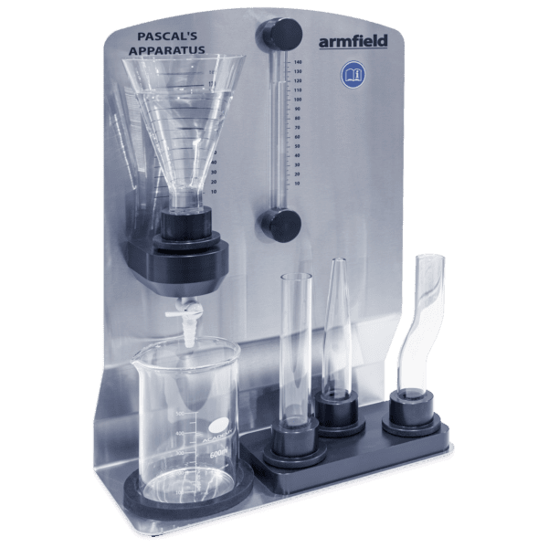 The Pascal’s Apparatus provides a simple demonstration that the pressure in an incompressible fluid varies with depth and does not depend on the shape of the container.